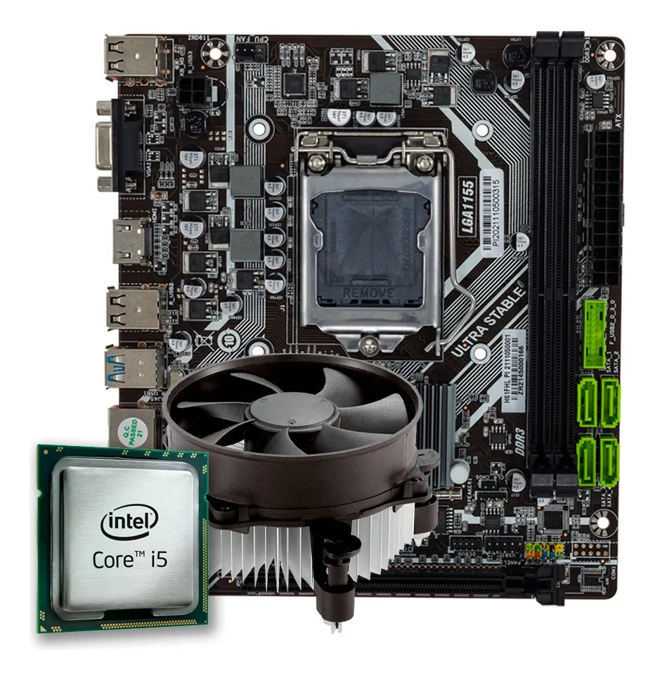 Este Kit Upgrade é composto de um processador Intel I5-3470 + Cooler + Placa Mãe 1155.