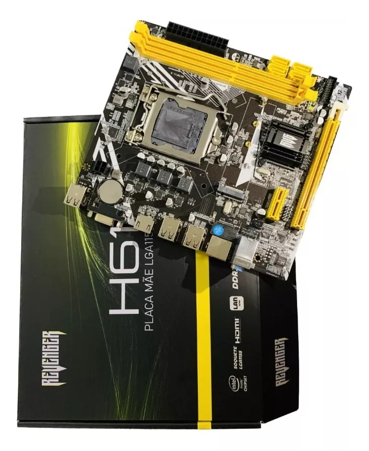 – 1 Placa mãe h61 1155 com Slot NVMe e Lan Giga